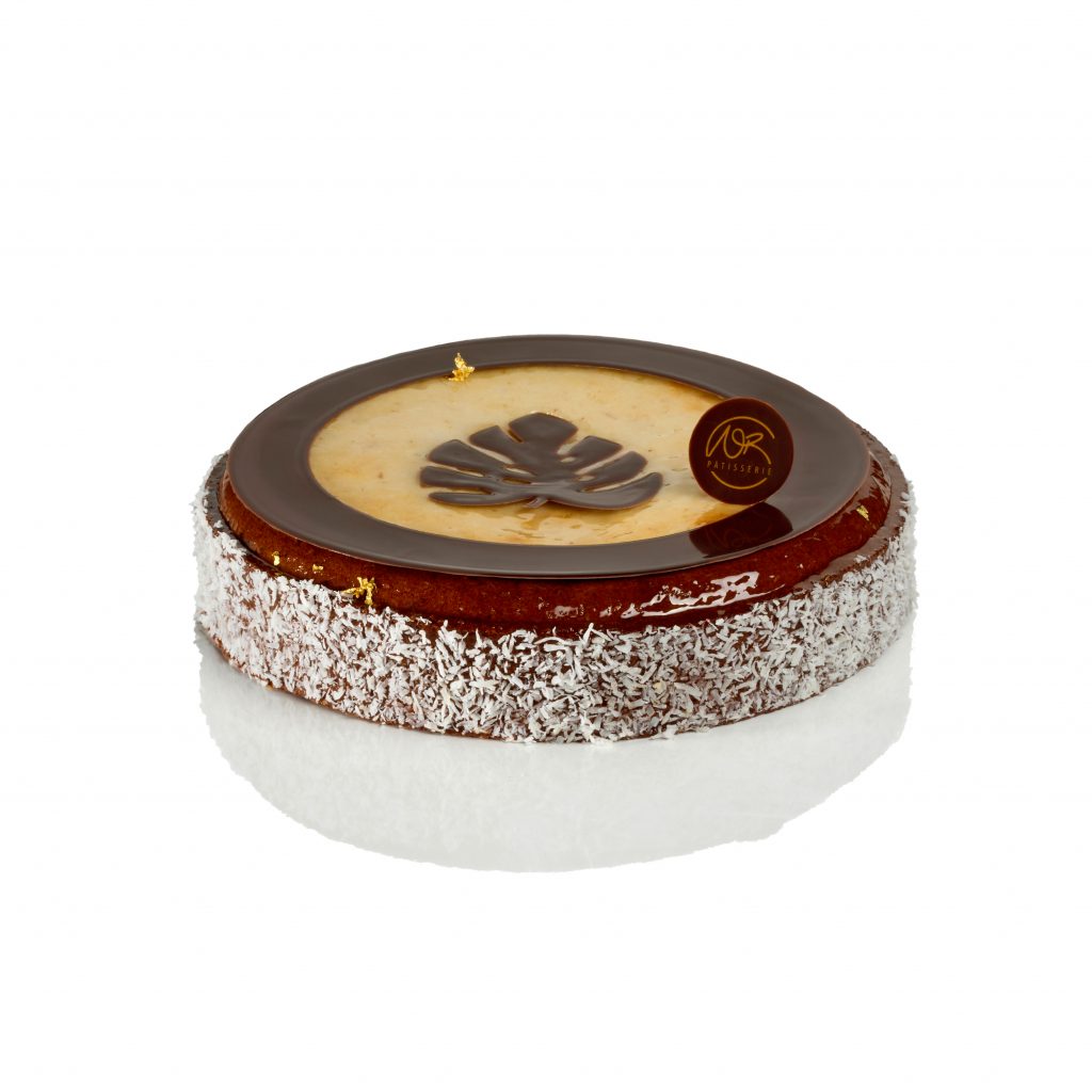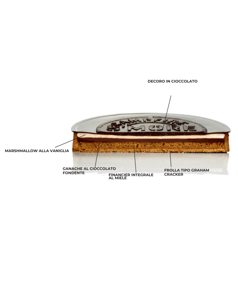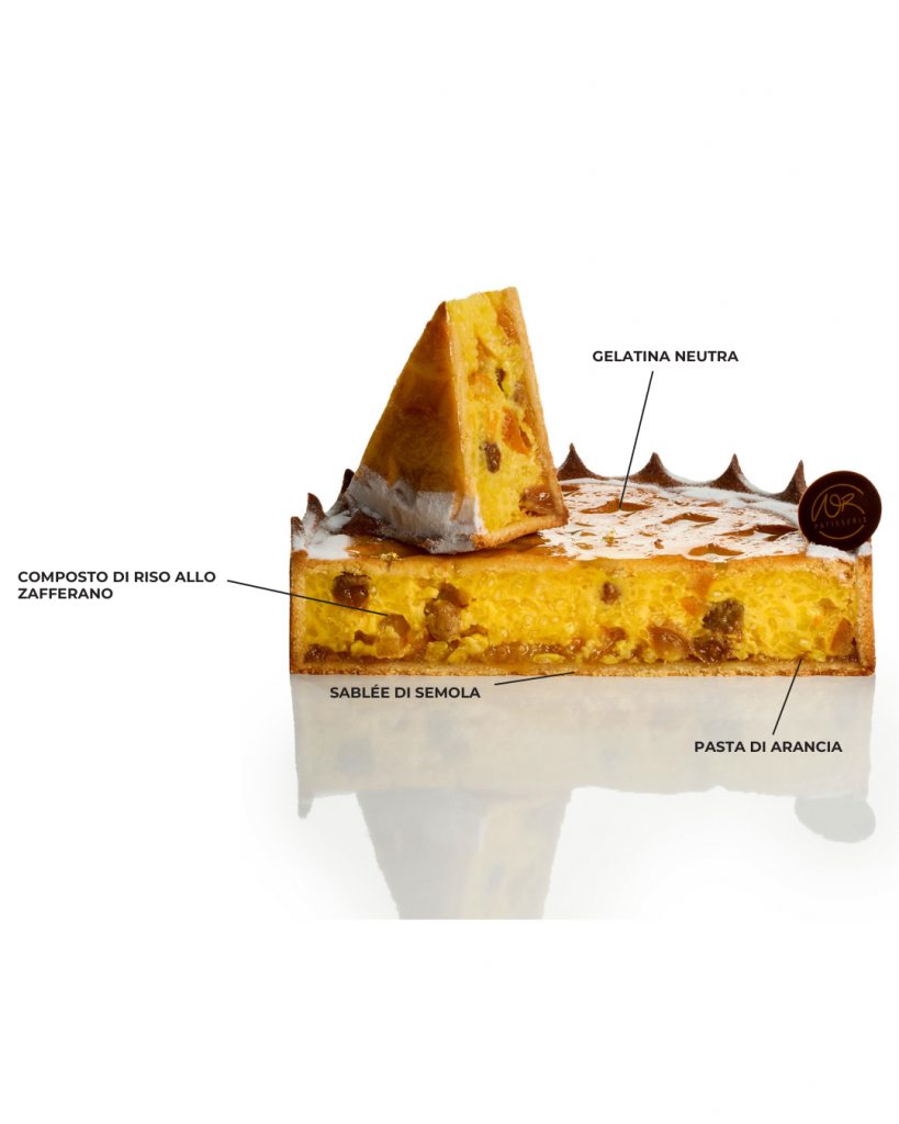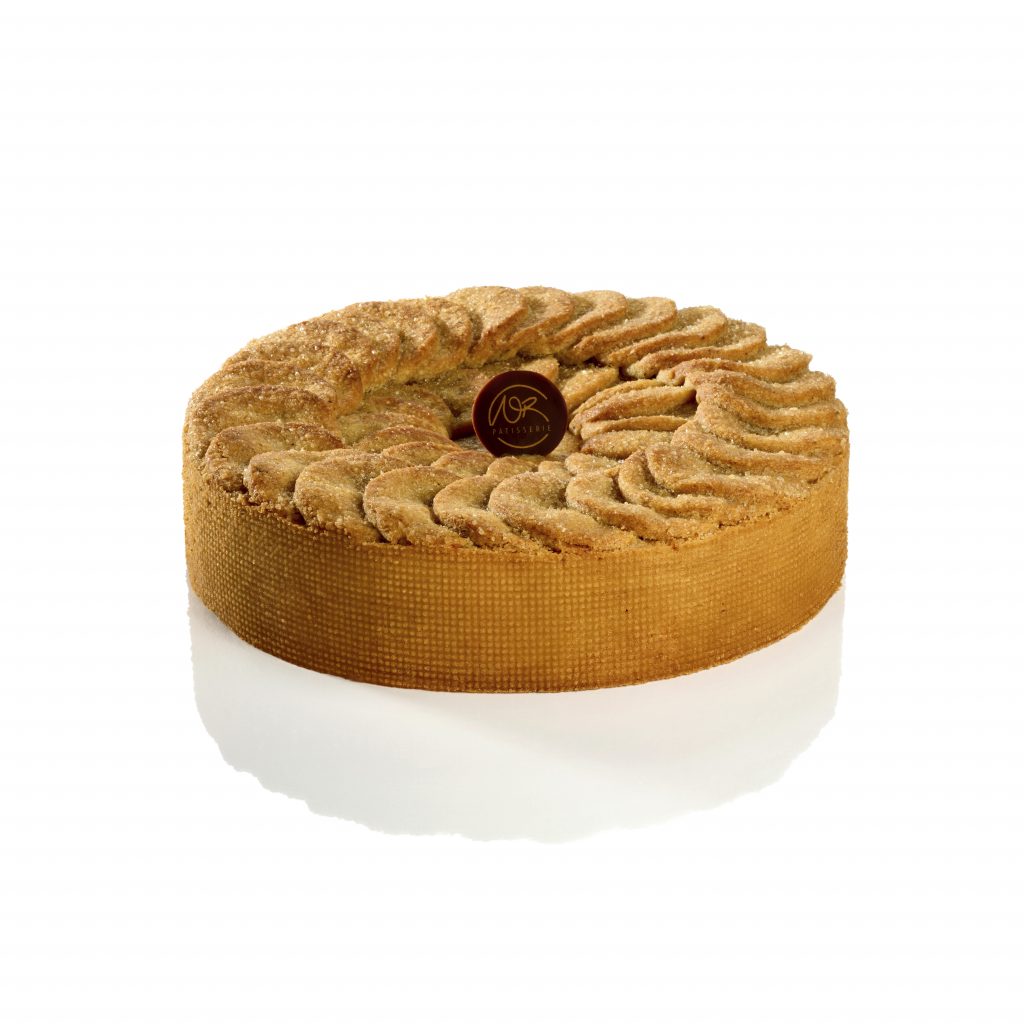 Un connubio vincente di due soli gusti declinato in diverse consistenze: la croccantezza della sablée, la masticabilità del frangipane e la setosità del cremino.